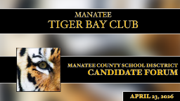 - Manatee Tiger Bay Club: Manatee County School District Candidate Forum; April 23, 2026